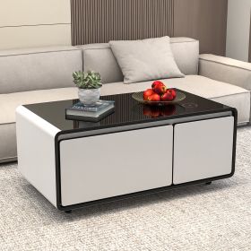 Modern Smart mini Coffee Table with Built in Fridge; Outlet protection; Wireless charging module; Mechanical temperature control; Power socket; USB i (Color: White)